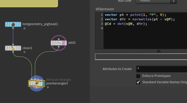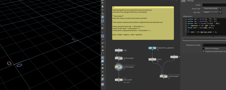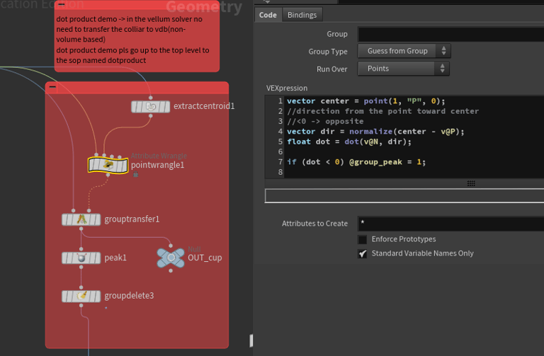 Next, I used the dot product between this direction vector and each point’s normal. If the dot product indicates that the point’s normal is pointing opposite the center, I added it to a group called “peak”.