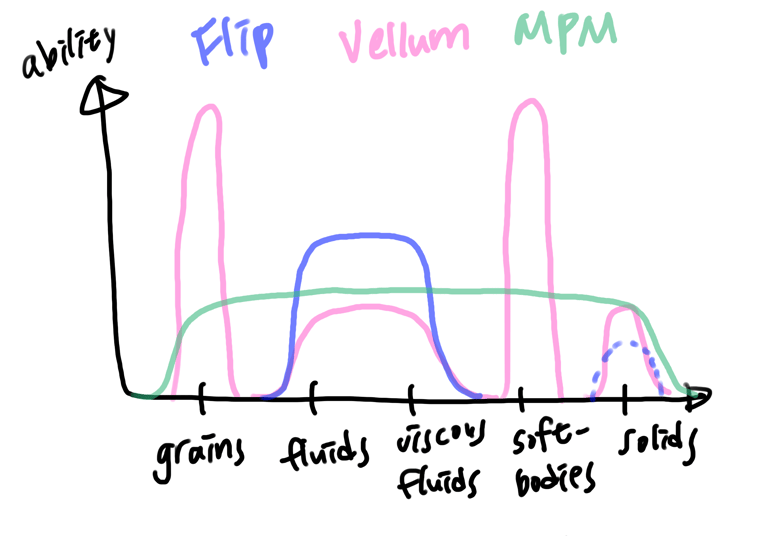 Material Simulation Strengths: FLIP, Vellum Fluid, and MPM